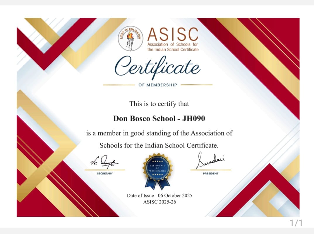 DON BOSCO SCHOOL aims at the all – round formation of the students. While students are helped to understand, appreciate and live their faith, every student receives training in habits of study, discipline, self-reliance and moral values so as to become worthy citizens of our country.